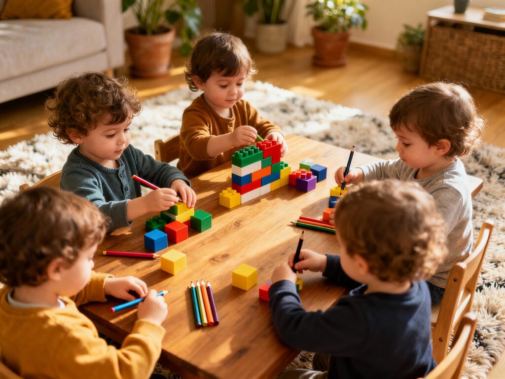 Alles passend bij de leeftijd, interesses en het tempo van ieder kind. De activiteiten wisselen elkaar binnen een vast dagritme af, zodat er een balans tussen ontspanning en uitdaging is. Ook gaan we regelmatig naar buiten om te wandelen of te spelen.